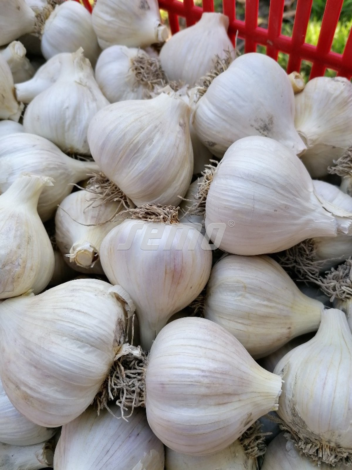| IVAN | hard neck, for autumn sowing | mid-early | wide erect green | 80-120 | creamy head violet cloves | slightly flattened round | 6-7 | 6 | very healthy, large bulbs |