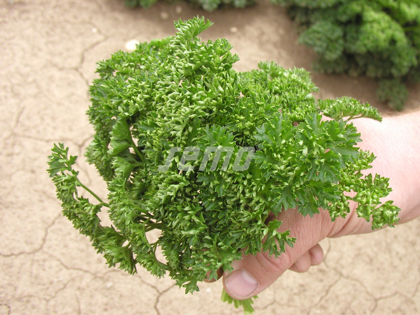 A Paramount type with dark green, highly curled leaves on long leafstalks. Tops are semi-upright. They do not lodge in rain, and are resistant to Powdery Mildew. Suitable for spring and summer sowing and for indoor growing. Excellent for fresh use and or drying. Good for bunching. First harvest in 95 days after sowing (Central European conditions).