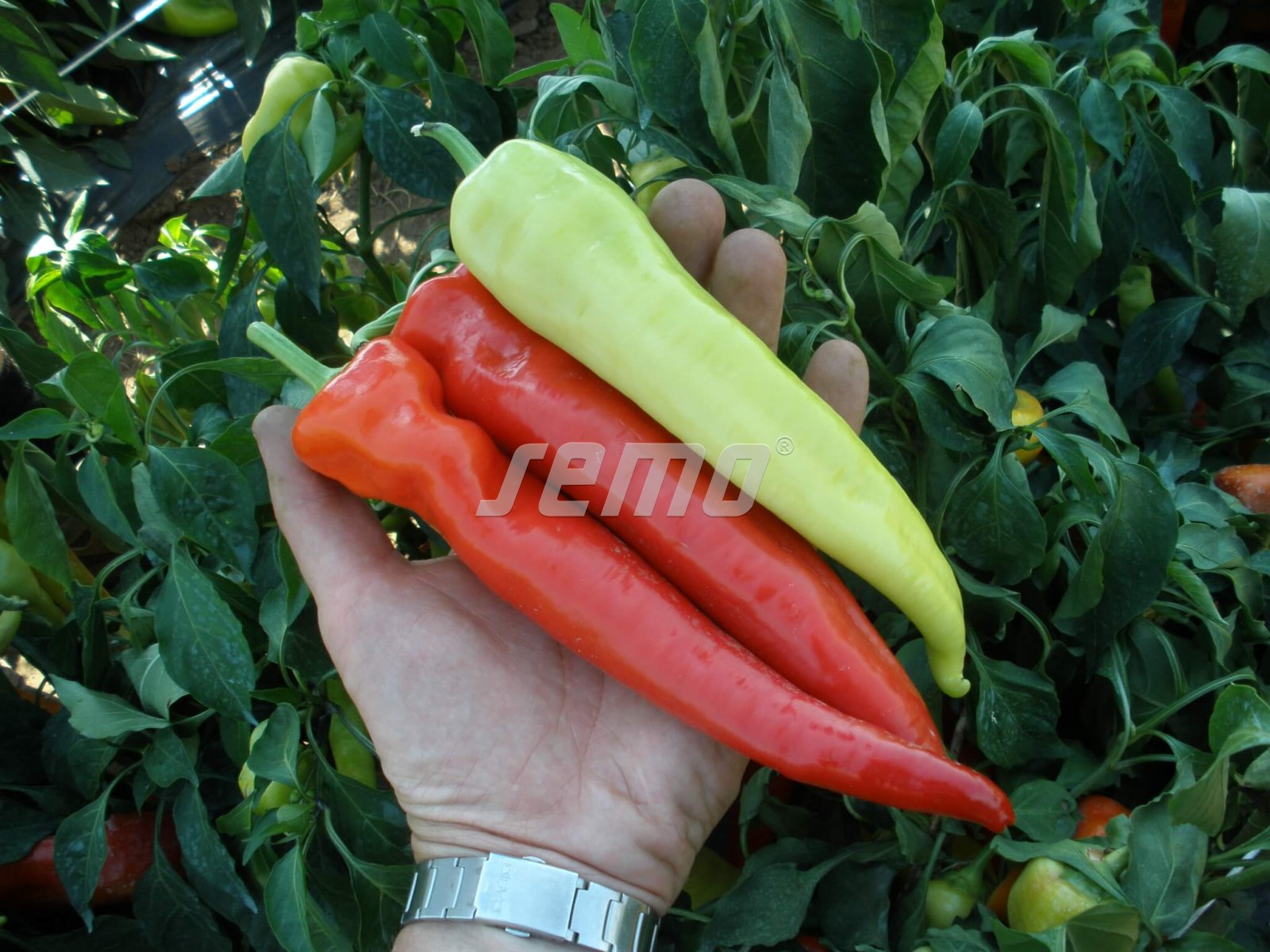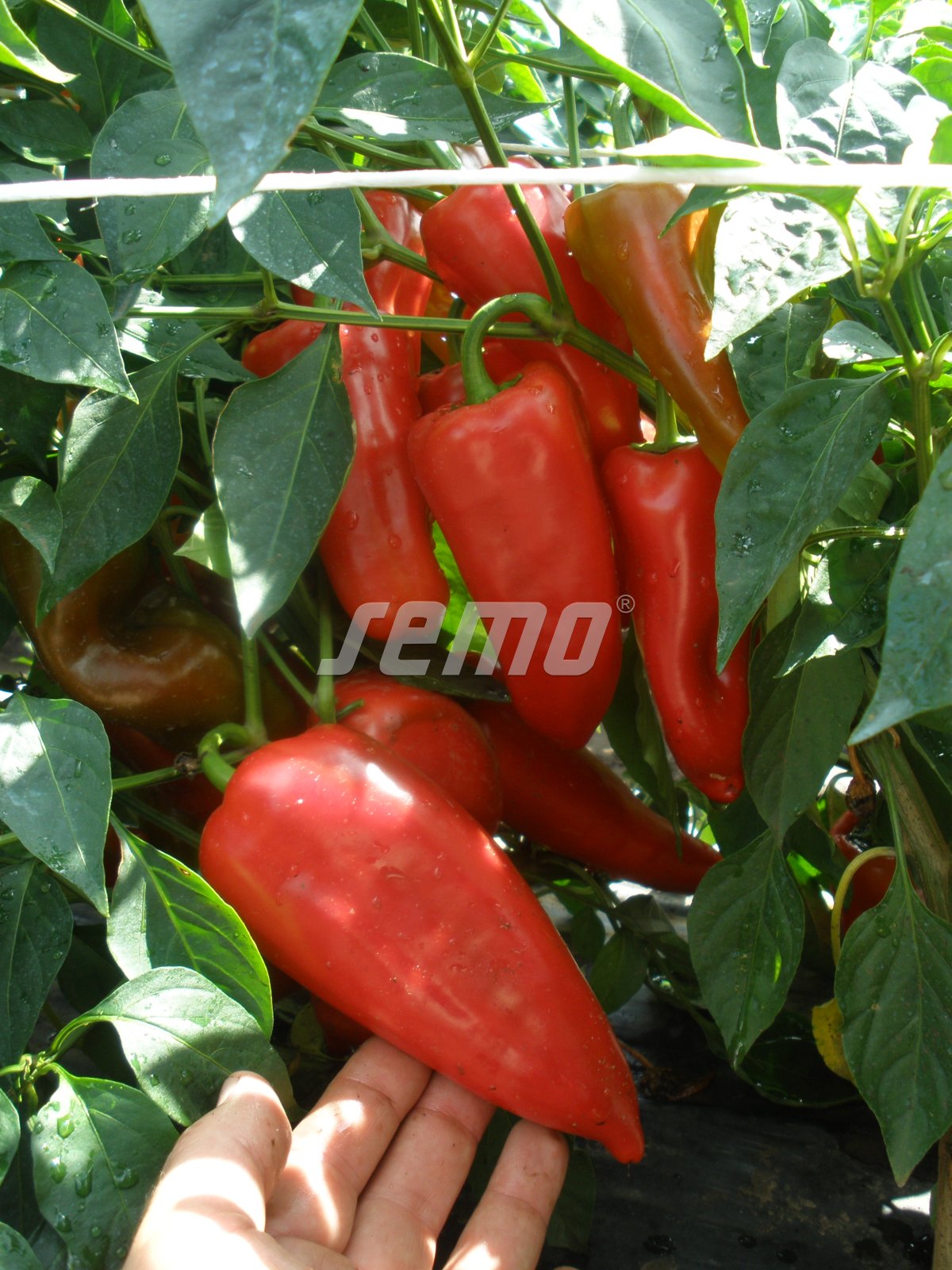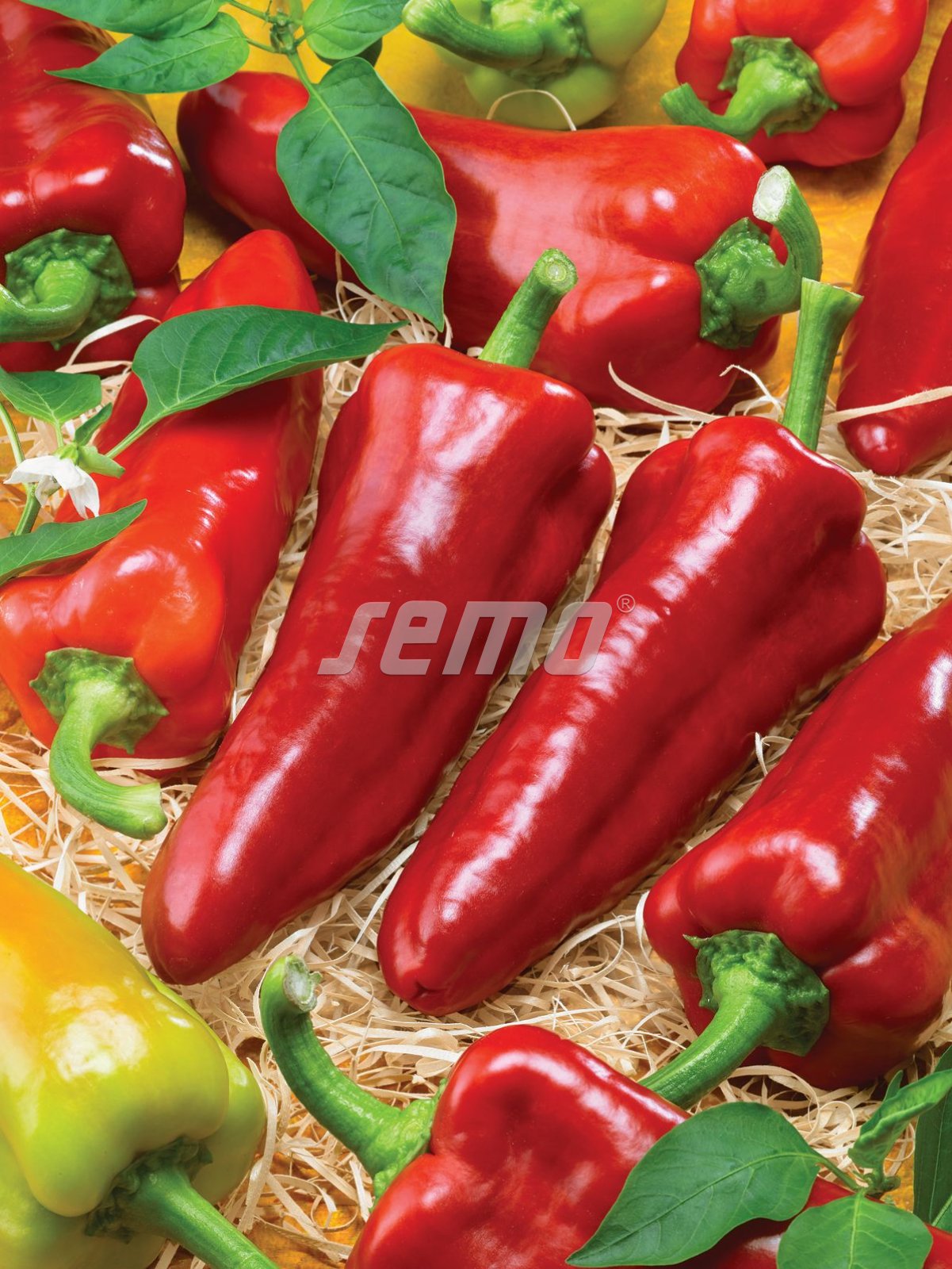 | SEMAROH | early | medium | light green | red | 2 | C1 | 3 - 4 | 16 x 3 | 80 | large "ram's horn" variety for both fresh market and canning | |||||