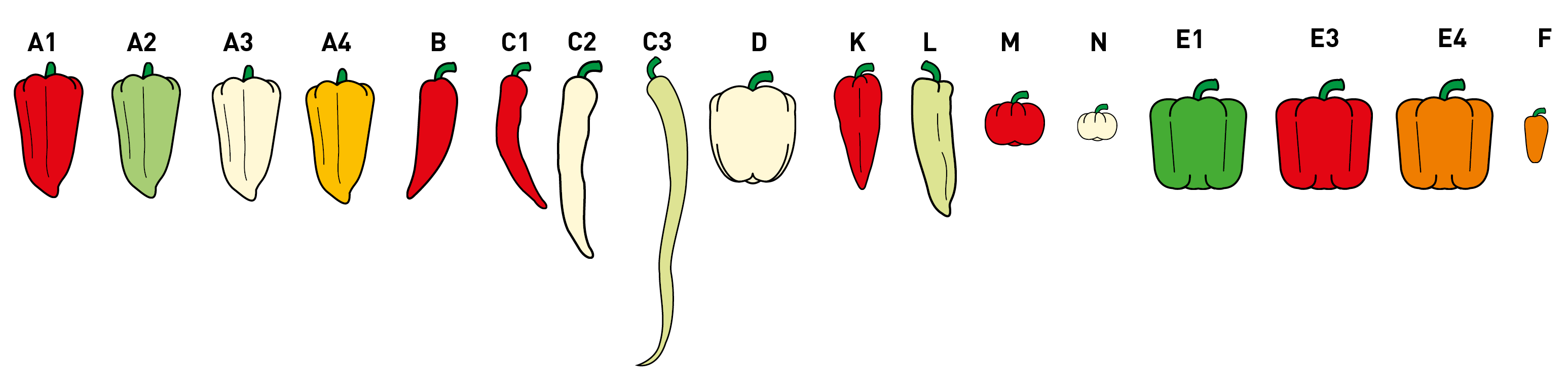 | KAPINUS F1 (SM-KAP) | mid-early | medium | dark green | dark red | 2 | B | 4 | 14 x 5 | 100 | a true kapia with a really firm fruit, recommended for sterilization | |||||