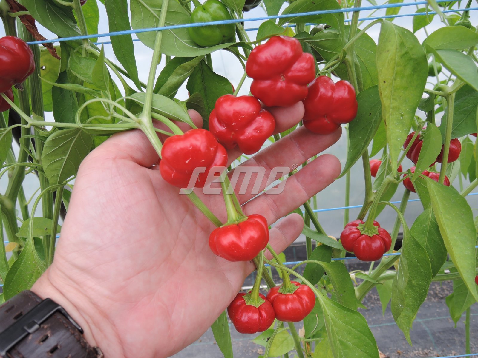 It is probably the most popular type of extremely hot peppers worldwide. The name comes from the Spanish name of Havana. The thin-walled fruits are 4-6 cm long and resemble ,,lanterns´´. Their heat levels vary among the various varieties, but all are very hot and range from 200,000 to 700,000 SHU. They mature late, so in colder regions (Central Europe and similar) are only suitable for they greenhouse or hoophouse. In warmer regions they can also be successfully grown in open field, with the first harvest in the end of summer.