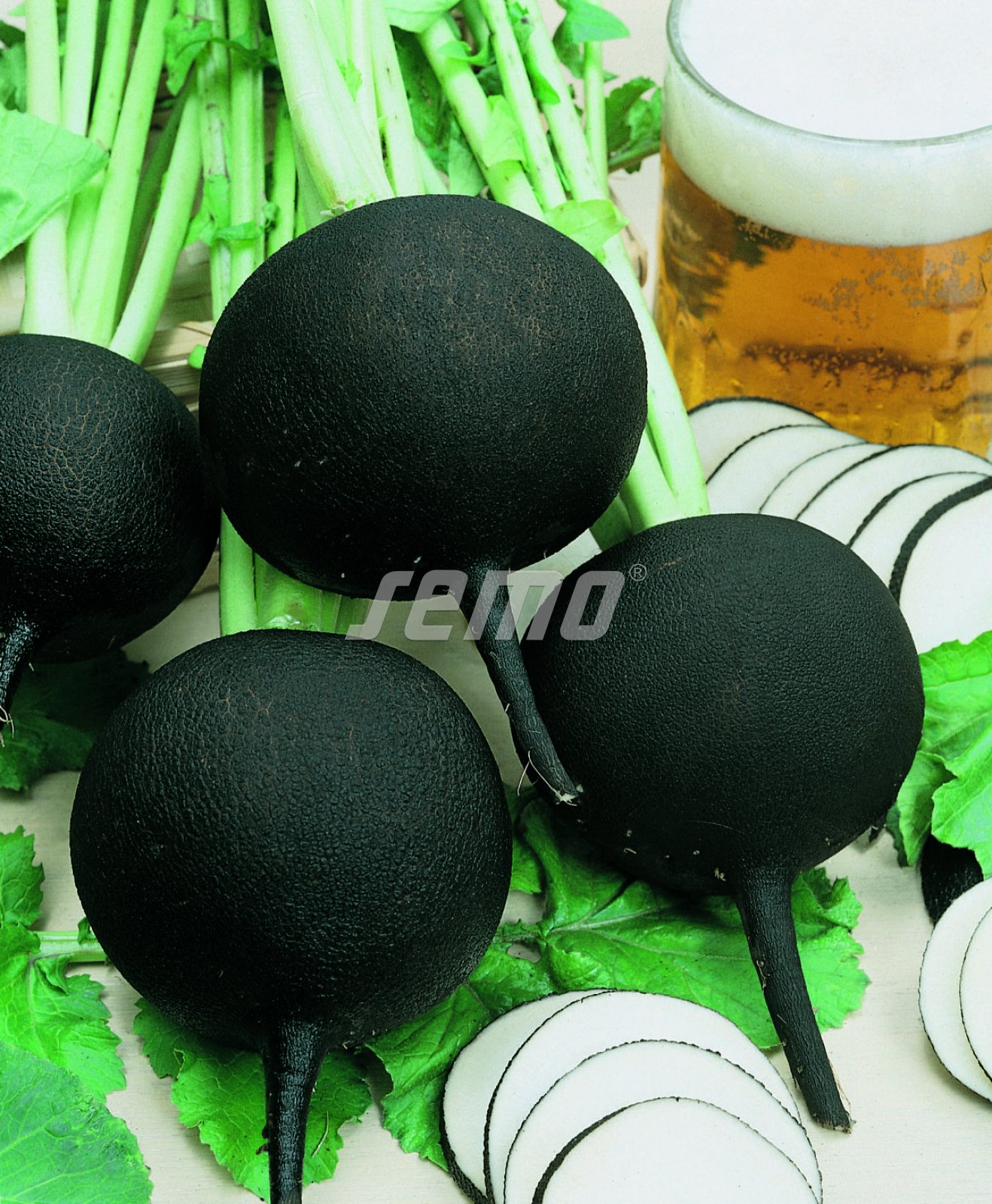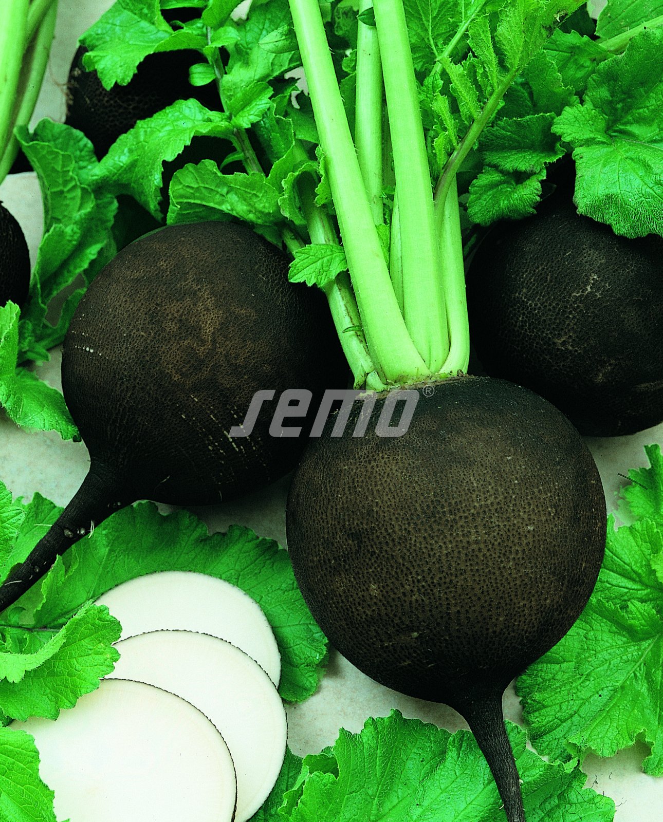 A round black radish with bright white flesh and an average diameter of 5-9 cm. A traditional variety suitable for fresh market and long-term storage. Approximately 80 days from sowing to harvest (in Central European conditions).