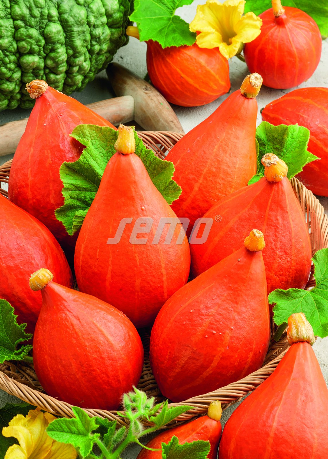 Winter squash of the Hubbard type with very attractive small fruits weighing about 500 grams. The size and shape of the fruits, including the pronounced ridges, resemble Acorn squash. But the color of the skin and flesh of SHEEPEK is deep orange. The plant has a semi-vigorous growth and will surprise you with a very high fruit setting. Nice fruits have a very small seed part and the volume of usable flesh is surprisingly large for a relatively small fruit. PS: It is definitely not a squash only for singles as it might seem at first glance. Thanks to its very fine texture and sweet taste, it is excellent for preparing both sweet and savory meats and, of course, popular soups. SHEEPEK also stands out for its very long shelf life (more than 6 months), which only strengthens the use of fully ripe fruits for decorative purposes. The name SHEEPEK comes from Czech name for rosehip, which its shape and color remind us of.