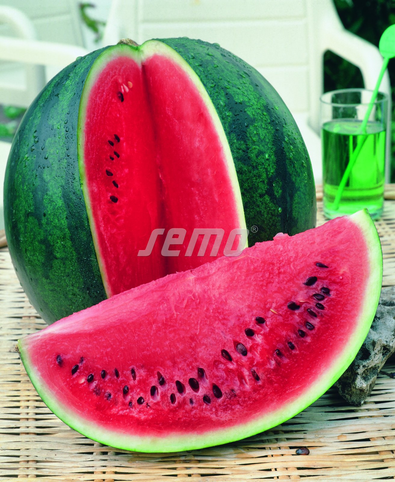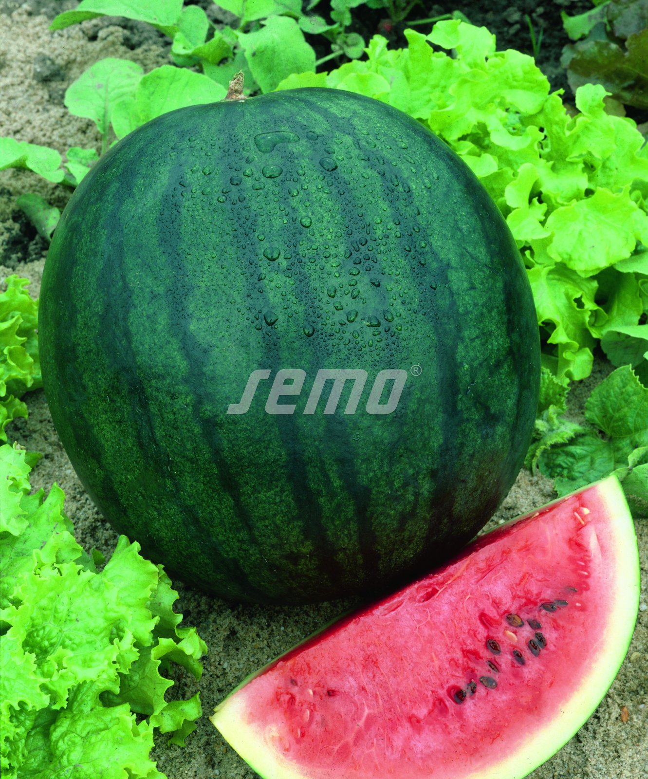A traditional, very early standard ,,icebox´´ watermelon with round fruits (3-5 kg) and a dark green rind with darker green stripes. Good resistance to cracking. Sweet, fine-textured, medium-red flesh. Ready for harvest in 75-80 days after planting (Central European conditions).