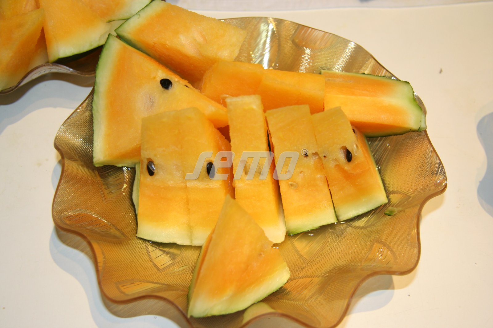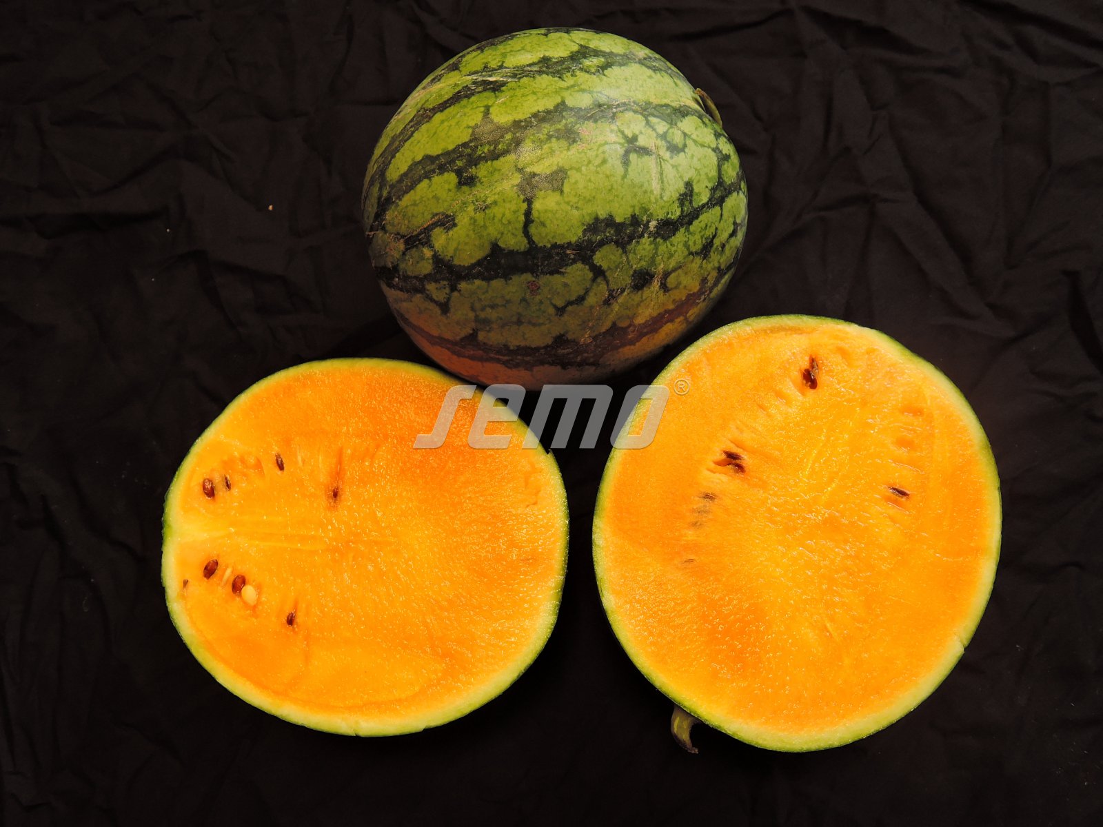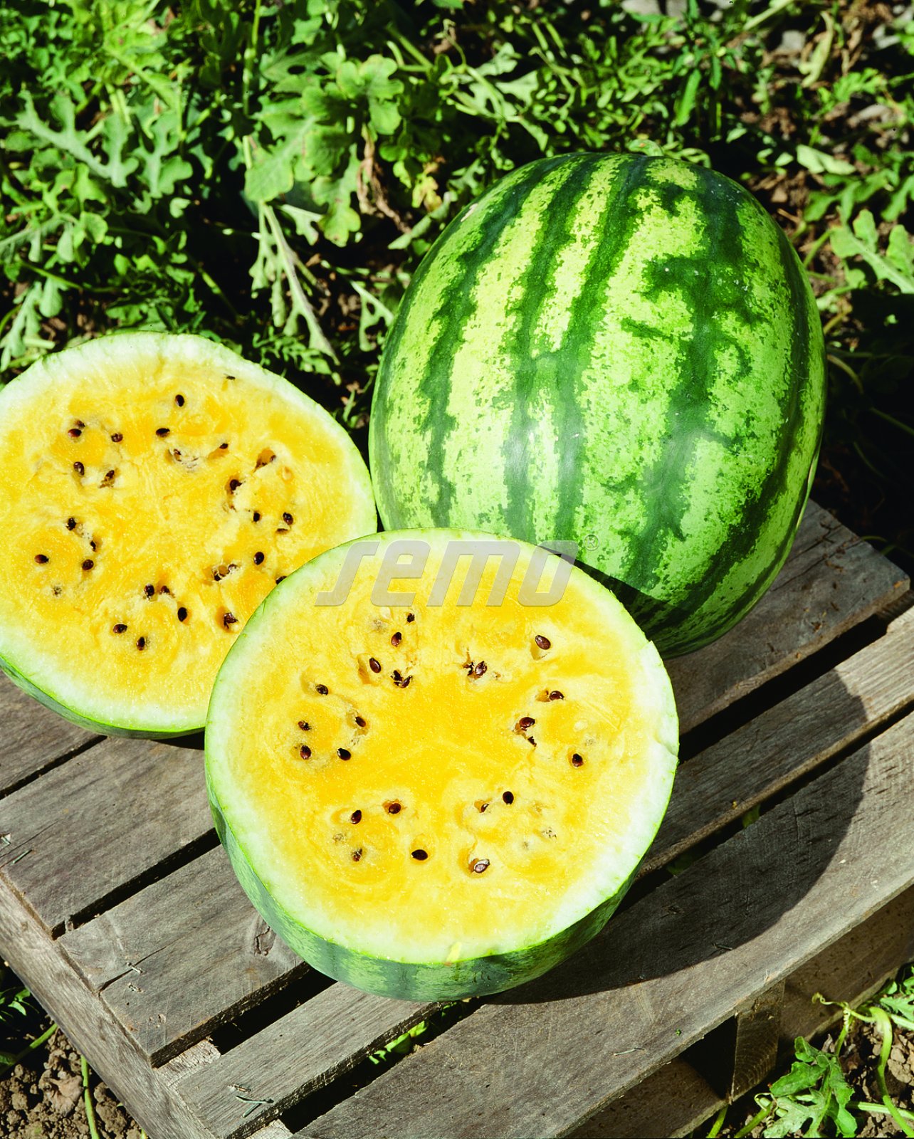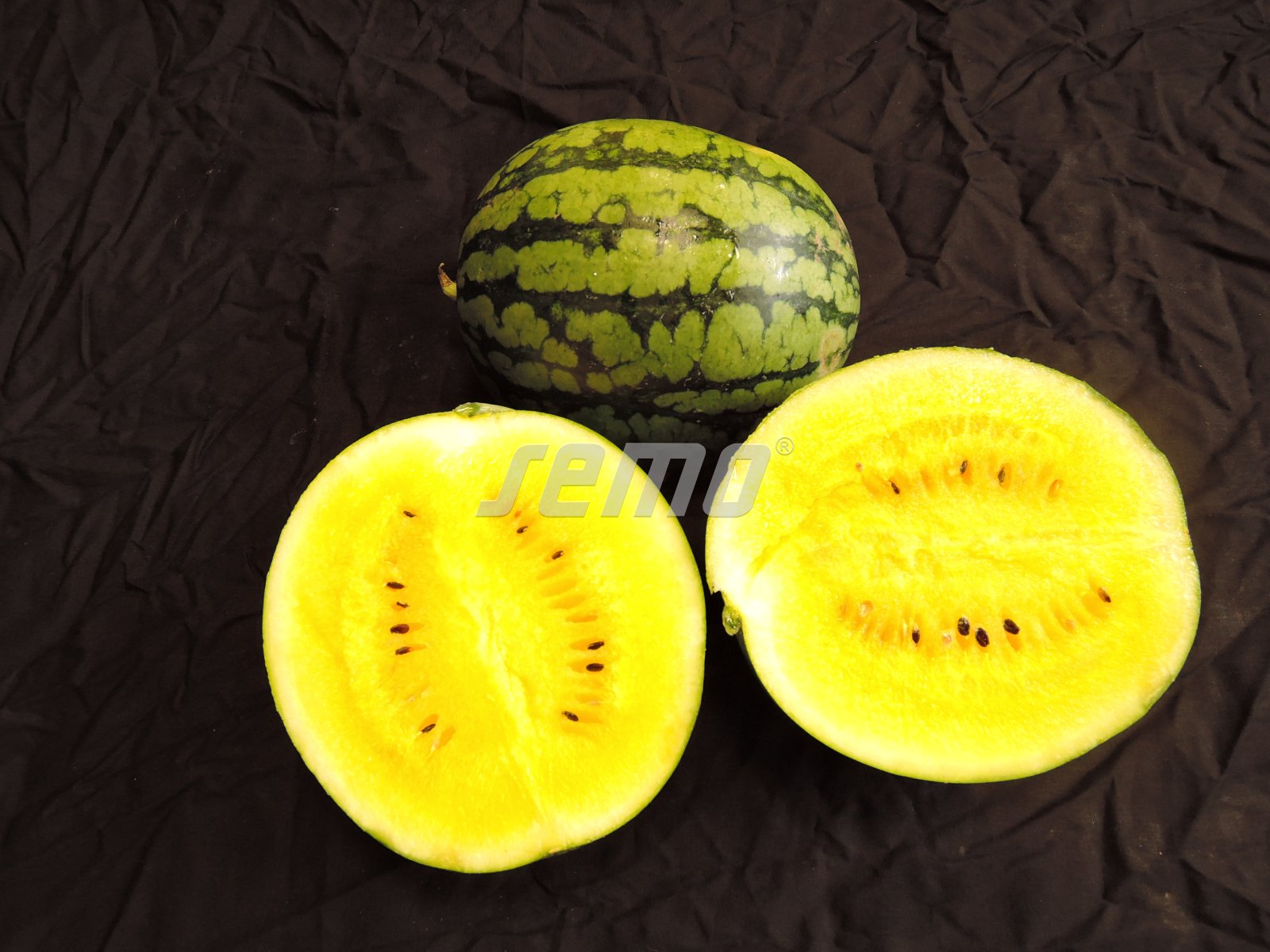 An easy growing early hybrid with very attractive yellow flesh. The round fruits are green with dark green stripes and average weight of 3-4 kg. The fine-textured flesh is refreshing and of excellent eating quality. Ready for harvest in 85-90 days after planting (Central European conditions).